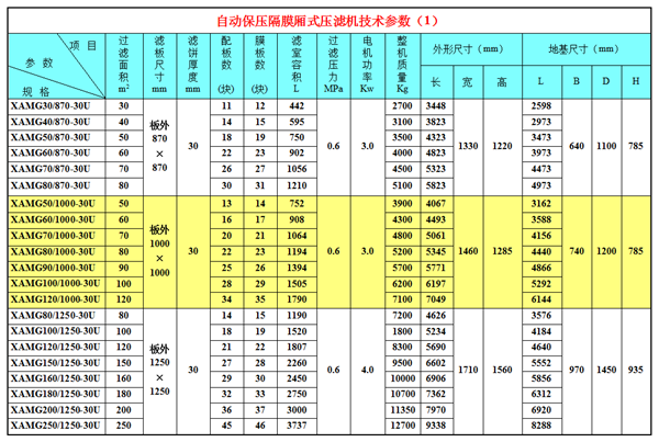 自動保壓隔膜廂式壓濾機技術(shù)參數(shù)(1)