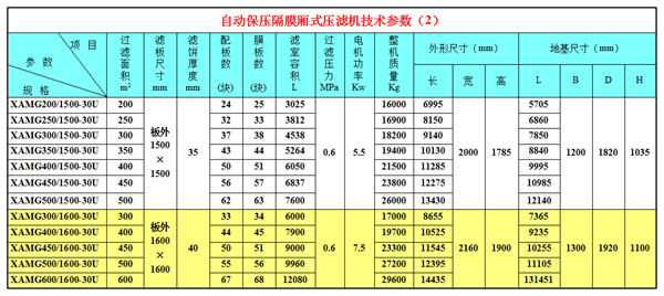 自動保壓隔膜廂式壓濾機技術(shù)參數(shù)(2)